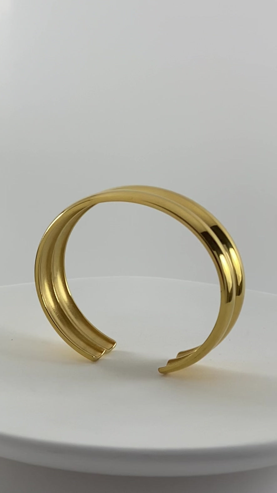 Gold Pearl Inlay Hoop Earrings – Modern Curve with Beaded Accent