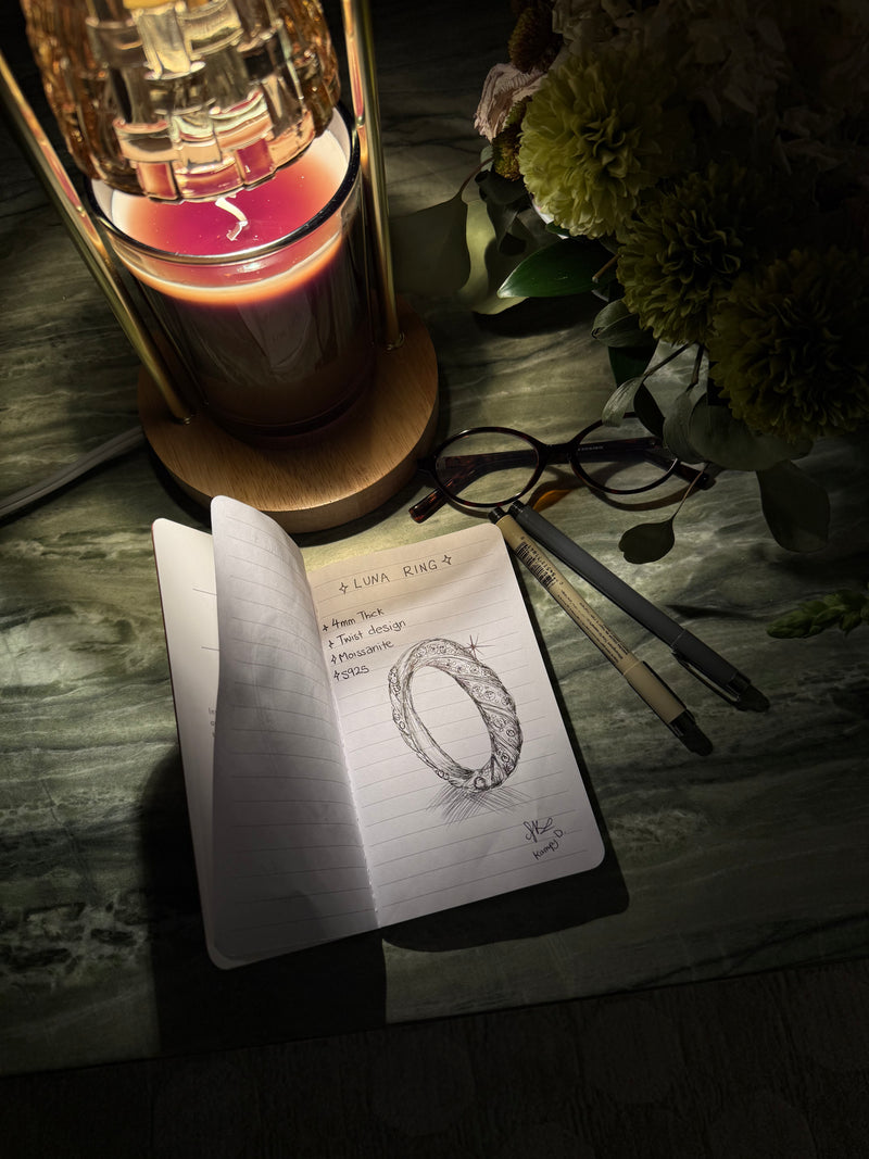 Every piece begins with a sketch drawn by me. Every stone is carefully selected for brilliance and grade. Every batch is small and rarely restocked. Every order is inspected and hand-packed by me. Every piece comes with its own gemological certification.