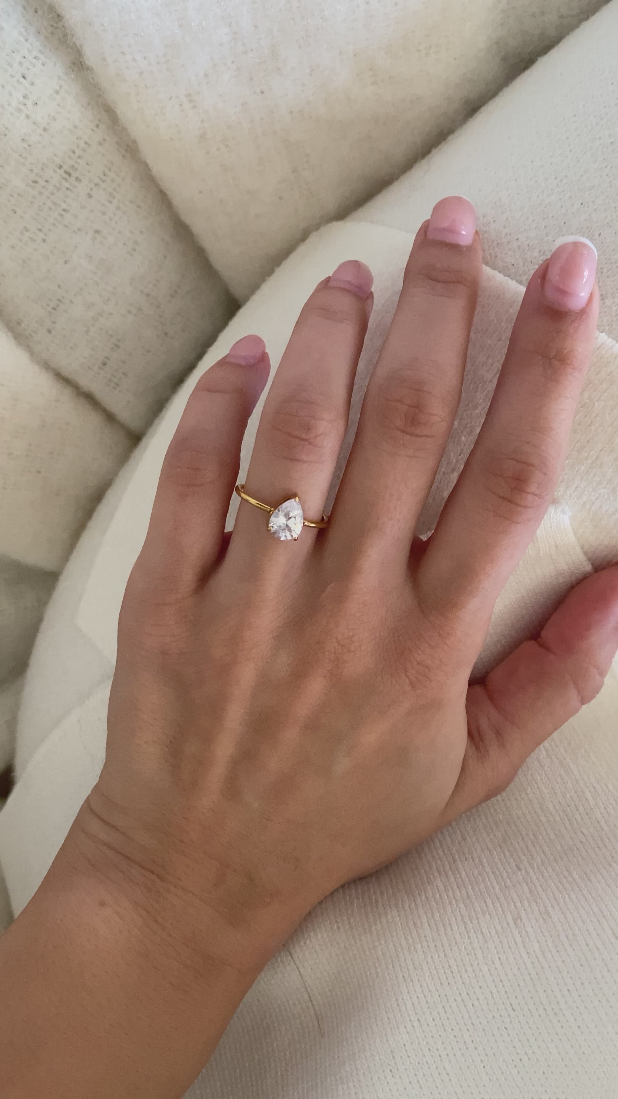 Simplicity and elegance come together in this Pear Cut Solitaire Ring. Featuring a 1ct zircon diamond in a classic pear shape, this ring is set on a delicate 1mm gold band for a minimal and sophisticated look. Crafted from 18K gold plated stainless steel, it’s tarnish-resistant, hypoallergenic, and designed for everyday wear. This timeless piece is perfect as an engagement ring, a promise ring, or simply as a chic addition to your jewelry collection.